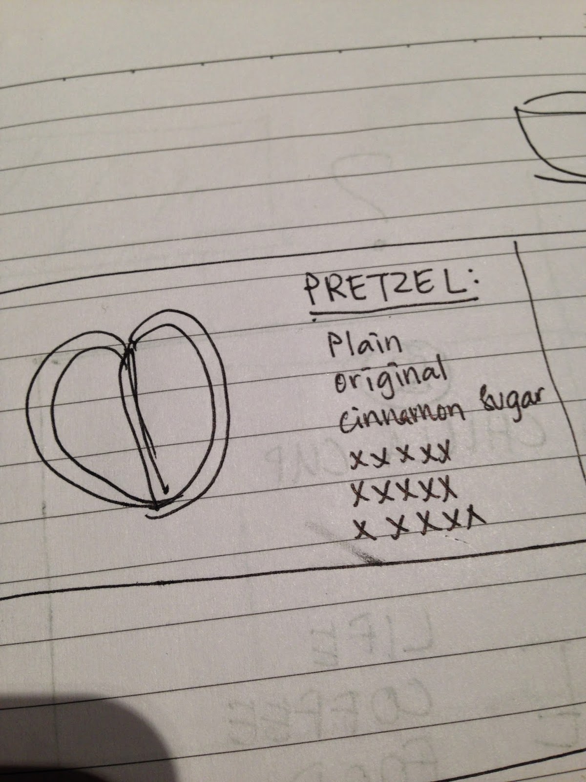 Next, I started to get so excited about designing the logo with pretzel and coffee beans.
